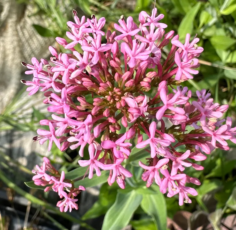 False valerian. Very hardy perennial with masses of heads of lightly perfumed mid-pink flowers from late Spring. Butterflies love this plant! Sun, semi-shade, most soils. Cut back after flowering. 75x60cm approx.