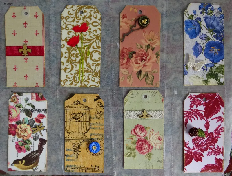 This is just a sample of the type of gift tags I create. Each one is unique and includes beautiful backgrounds, including fabric ones and hand-painted elements. These tags make the perfect gift for that someone special, whether it be to decorate a present or as home decor. Many of my clients display my gift tags in their home as part of their decor.