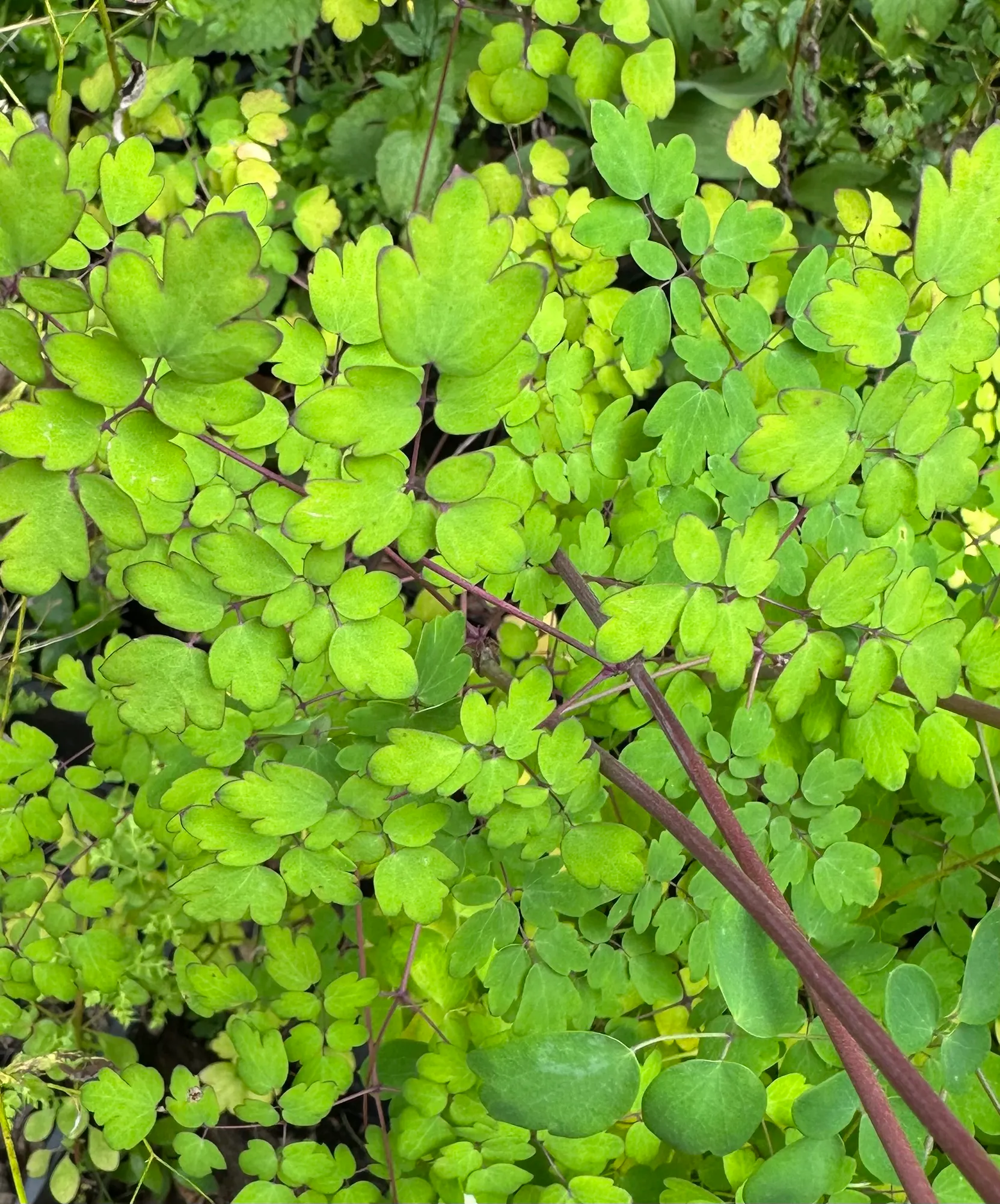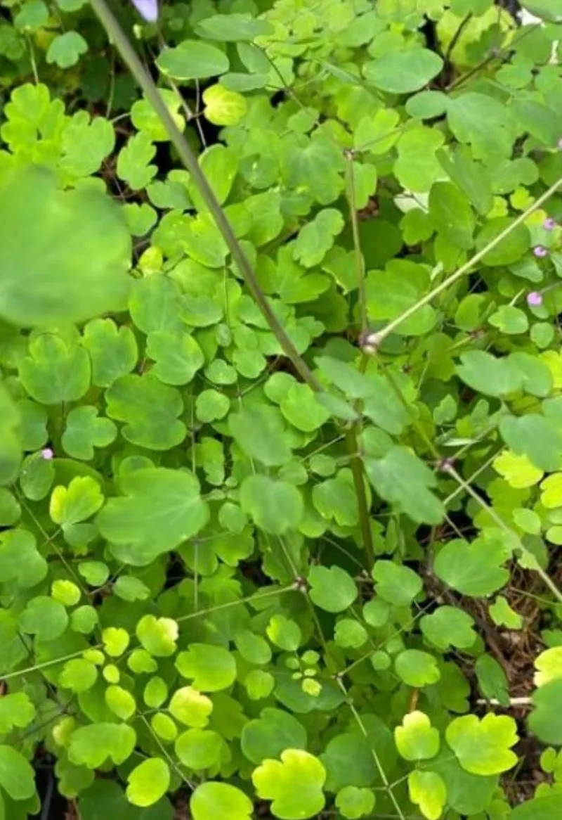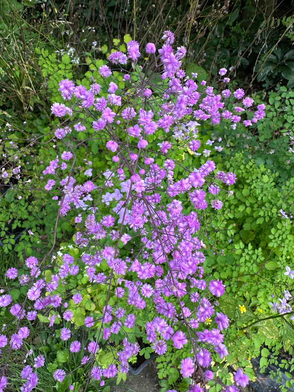 A stunning much sought after perennial which sends up 1.5m stems of very pretty foliage topped with a myriad of small, beautiful double lilac-mauve flowers, creating a cloud-like effect. Sun, semi-shade, rich soil, moisture in summer. Winter dormant. 1.5m x 75cm approximately.