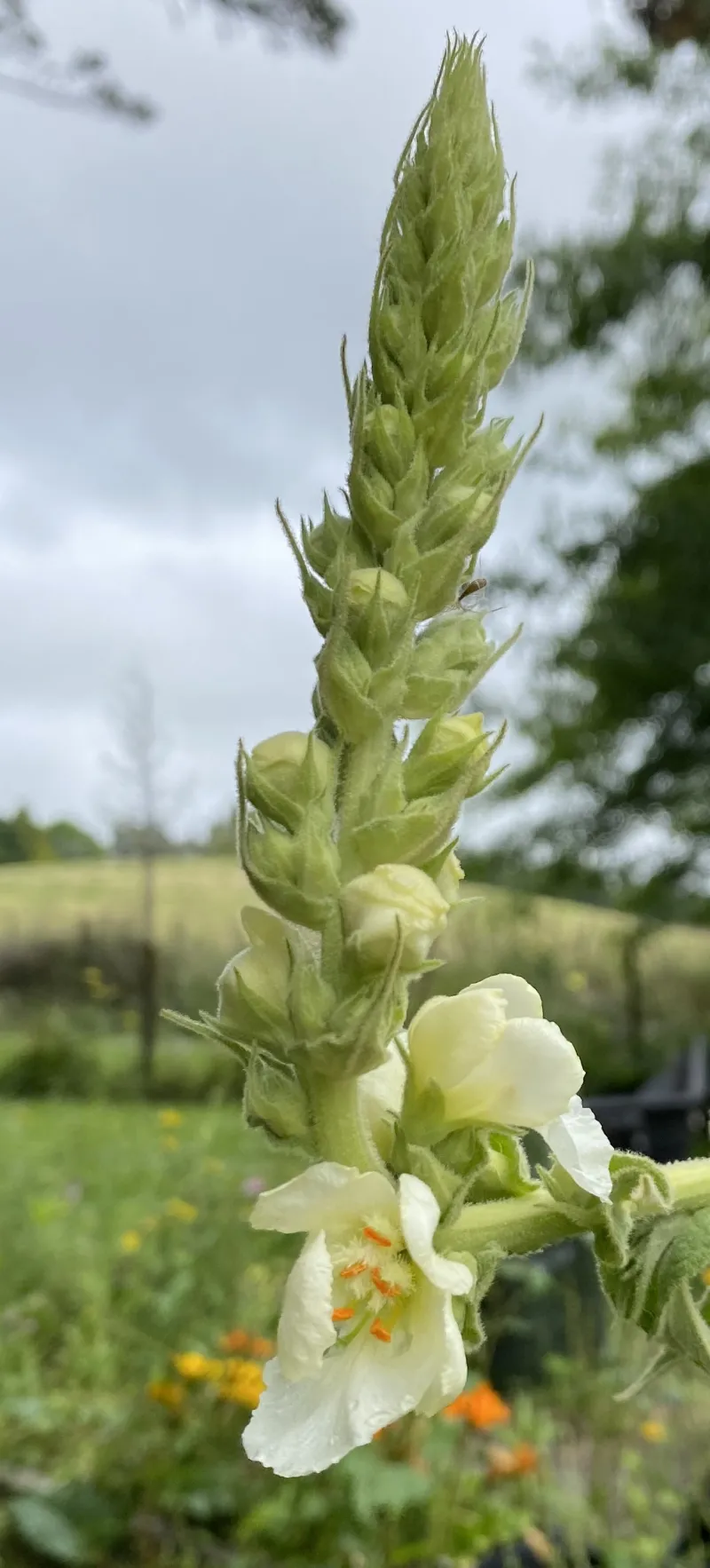 This is a gorgeous Verbascum with grey woolly leaves and strong tall stems of beautiful creamy-white flowers that are approximately 2.5cm across. Perfect for creating height in the perennial garden and also looks very architectural as a feature in a gravel garden. Remove flowering stems to retain vigour at the crown - this beauty will also self-seed politely. Beloved by bees and butterflies too. Full sun, well drained soil. Tolerates drought well once established. 1.5m x 1m (gets to that width when truly happy).